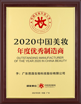• 中國化妝品行業OEM類最佳質量信用企業